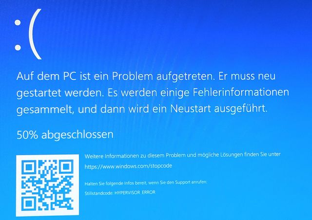Ich habe die Erfahrung gemacht, dass bei mir unter Windows 10 2019 Enterprise LTSC, der Host, beim Versuch, Win 11 25H2 in einer VM unter Virtualbox (7.1.4 r165100 (Qt6.5.3)) zu booten, mit einem Bluescreen (Hyper-V Fehler) abgestürzt ist (siehe obiges Foto). Vorher konnte ich die gesicherte VM schon nicht hochfahren lassen (es gab eine Fehlermeldung, deren Detail ich nicht mehr erinnere, also habe ich die VM ausgeschaltet und die Windows 11 25H2 VM neu booten lassen). Die Auswertung der .dmp-Datei, deren Erstellung extrem lange (ca. 20-30 Sekunden) benötigte, enthielt kaum Informationen und ergab keinen Hinweis auf die Ursache (nur einen Kernelabsturz). Secure Boot ist auf dem Host deaktiviert.