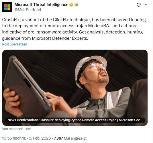Das Microsoft Security Team hat die Details im Beitrag New Clickfix variant 'CrashFix' deploying Python Remote Access Trojan ausführlich beschrieben.
