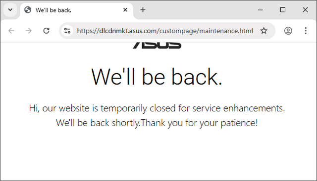 Weil, wenn man egal welche Asus Seite mit einer deutschen IP aufruft, immer diese Meldung wegen der Wartung kommt. Nutzt man aber ein VPN dann kann man die US oder UK Seite aufrufen und man sieht die normale Webseite. Gerade selbst getestet und für gut befunden.