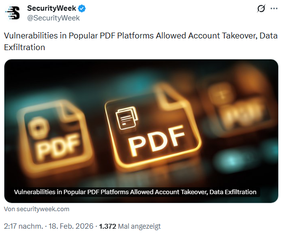 Zudem haben populäre PDF-Tools wie der Apryse-WebViewer und der Foxit PDF Cloud Service Schwachstellen. Darauf weist der nachfolgende Tweet und der Artikel hier hin.