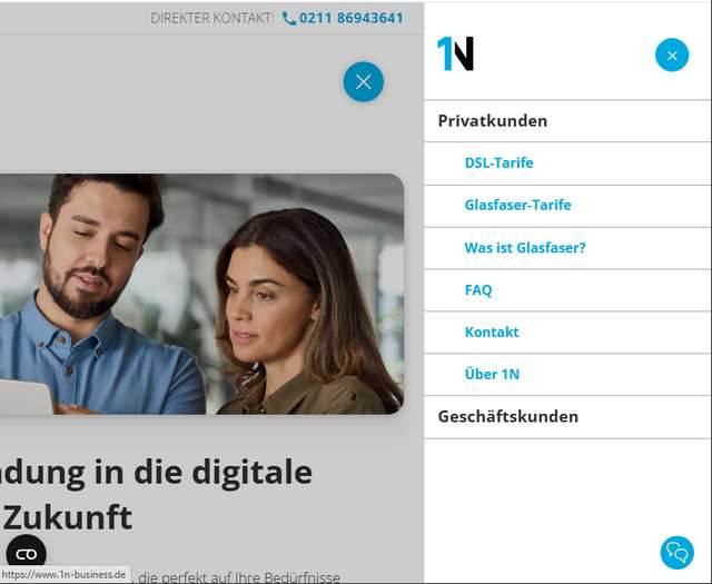 Gerade bin ich auf etwas nettes aufmerksam geworden. Auf der Webseite der 1N Telecom GmbH kann man auf einen Link Geschäftskunden klicken. Der Link zeigt derzeit noch auf 1n-business[.]de (siehe folgender Screenshot).