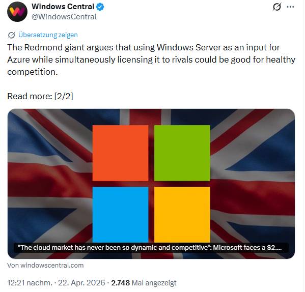Wettbewerbsrechtlerin Maria Luisa Stasi reichte die Klage im Namen von rund 60.000 britischen Unternehmen ein und fordert Schadenersatz in Höhe von etwa 2,8 Milliarden US-Dollar. Ein Londoner Gericht hat Mitte April 2026 dann die Sammelklage gegen Microsoft zugelassen. Seitdem muss sich Redmond gegen den Vorwurf wehren, dass es die Großhandelspreise für seine Windows Server-Softwarelizenzen für konkurrierenden Cloud-Plattformen höher angesetzt hat als für seinen eigenen Azure-Dienst.