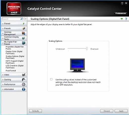 1. Das Catalyst Control Center für die Radeon-Grafikkarte öffnen und dort zum Eintrag My Digital Flat-Panels (kann in deutsch anders heißen) gehen.