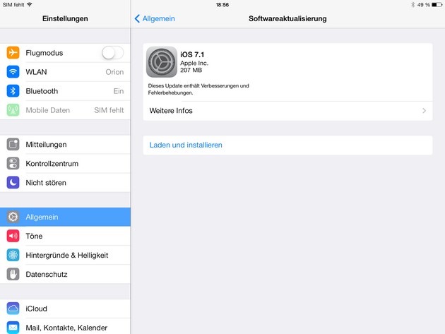 Das Update ist auf einem iPhone 5 214 MByte fett (auf meinem iPad 3 nur 207 MByte). Ich lasse das Update gerade herunterladen und installieren. Der fetteste Punkt ist wohl, dass die CarPlay-Funktionalität (siehe Apples CarPlay – jetzt ist's offiziell) in iOS 7.1 enthalten ist. Weiterhin hat Apple den "reboot bug", der einige iPhone 5S-, iPad mini mit Retina Display un diPad Air-Benutzer geplagt hat, behoben. Laut TheVerge soll es auch kleine Verbesserungen an der Benutzeroberfläche geben. Eine ganz gute Übersicht über Neuerungen findet sich in diesem apfelearth.com-Beitrag.