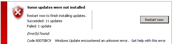 Das Problem ist schnell umrissen: Bei der automatischen Installation von Updates wird diese durch Windows mit der Fehlermeldung 0x80070BC9 verweigert. Man wird ggf. zum Neustart aufgefordert, was aber auch nicht weiter hilft.