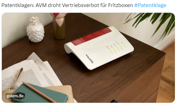 ParagraphNoch ein kurzer Informationssplitter von letzter Woche, den ich mal nachhole. Der chinesische Hersteller Huawei hat unter anderem gegen den Berliner Hersteller AVM wegen Patentverletzungen im Bereich Wi-Fi 6 geklagt. In einem ersten Prozess hat das Landesgericht München I Anfang November 2023 ein Urteil in einer Klage gesprochen. Dort wurde ein Verkaufsverbot bejaht. Nun wird spekuliert, ob AVM ein Vertriebsverbot für aktuelle FRITZ!Box-Modelle droht. Noch ist aber alles in der Schwebe, da die Patente angefochten werden und das Urteil noch nicht rechtskräftig ist – eine Revision vor dem Oberlandesgericht wurde eingereicht.