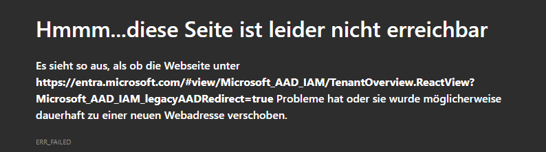 David S. meldete sich per Mail mit dem Betreff "MS Entra down" und teilte mir um 14:29 Uhr mit, dass "man seit knapp 2 Std. nicht mehr auf MS Entra kommt" (danke für den Hinweis). Er bekommt beim Versuch, die Dienstseite aufzurufen nur folgende Fehlermeldung: Die aufgerufene Seite ist leider nicht erreichbar, heißt es lapidar.