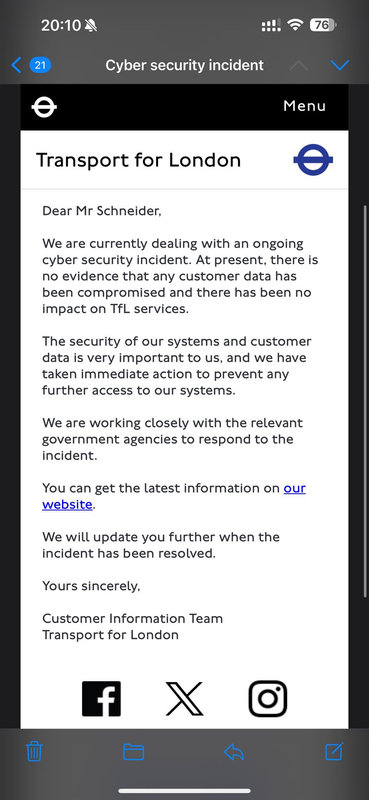 Kurze Information – sehr viele Details liegen mir noch nicht vor. Auf das U-Bahn-System der britischen Stadt London hat es einen Cyberangriff gegeben. Der Angriff muss seit dem gestrigen Montag (2. Sept. 2024) laufen – ein Leser hat mir eine entsprechende Benachrichtigung zugesandt. Aktuell geht der Betreiber davon aus, dass keine Kundendaten abhanden gekommen seien – es gebe jedenfalls keine Anzeichen. Weitere Details gibt es in der Mitteilung keine.