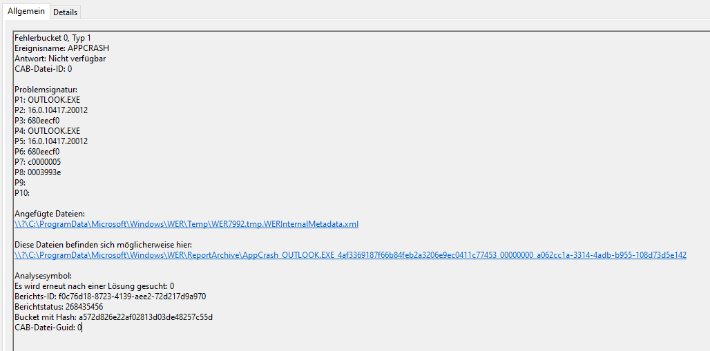 Laut Blog-Leser steht auch in der WER Datei nichts brauchbares drin. Zum Testen wurden dann noch alle Addins deaktiviert, was aber erfolglos bliebt. Und auch im abgesicherten Modus passieren die Abstürze.