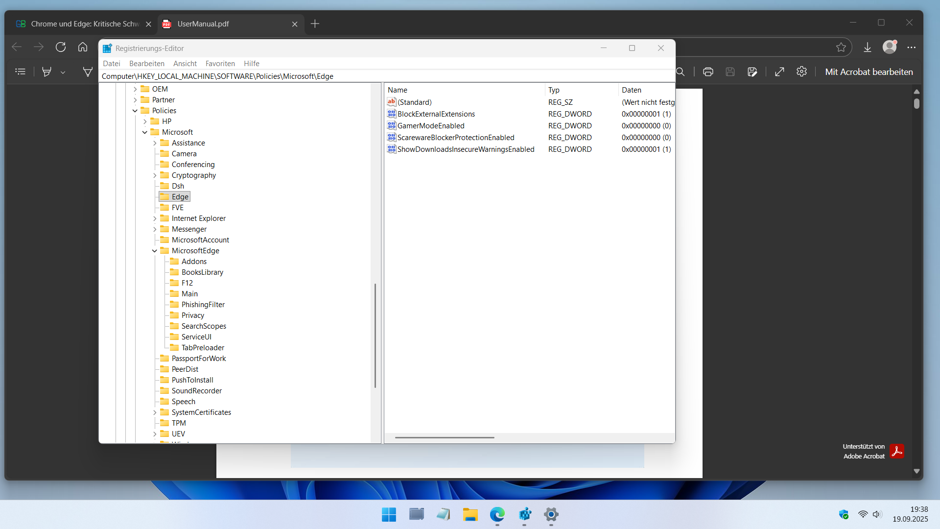 Wenn man PDF nicht im Edge öffnen will, dann sollte man das mit GPO einstellen: